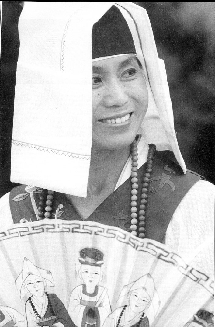 At that point all I knew about Hi-ah Park was that she was born in Seoul and is considered the finest Korean traditional classical dancer of her generation. The first woman to be admitted to the National Classical Music Institute and into the esteemed ranks of Court Musician, she gave by any standards an exquisite “performance”, but this was not just a dance recital on the second floor of a downtown Buddhist temple. She literally went a giant step further.