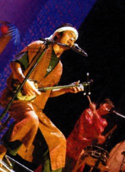Afterwards, in a small room off-stage, we bow and exchange greetings. He is seated on the floor; the sanshin lying next to him looks small, almost like a child’s toy. I kneel, facing him, basking in a feeling of rare intimacy. His name is Yamashita Masao, and he is known as “Ma-chan,” which is also the name of his band. “Ma” is the first syllable of his given name, and “ -chan” an endearing suffix commonly added to Japanese children’s names. Ma-chan is from the island of Iriomote, far south of the main islands of Okinawa — a place known for nature, sun and sea.