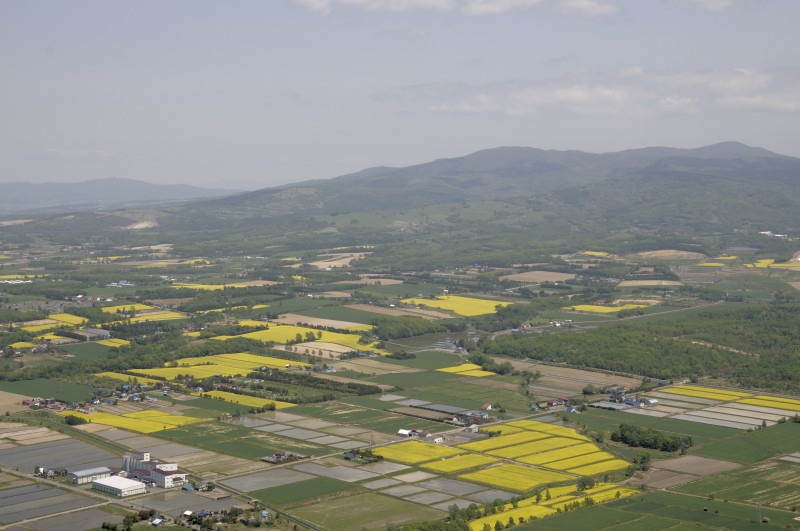 From five hundred meters up, the density of downtown Takikawa clarifies through its grayness. Major highways cut up the quilt of streets; city hall rises the tallest above two-story shops and apartment buildings. Takikawa is rural, a regional hub, though a small one of just over 40,000 people. And beyond the downtown, the inaka (countryside) envelops the city in rice fields, at the confluence of the Ishikari and Sorachi Rivers.