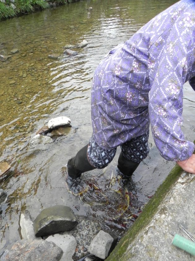 Whilst out walking by the riverside, we had a chance meeting with an 86-year-old local, Sayo Horie, who was kneading away at the mulberry kozo in the frigid water in her welly boots. I was so moved by this extraordinary encounter, as I could feel her passion towards a craft she that has been engaged in almost all her life still burning so strongly.