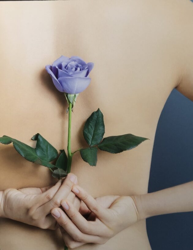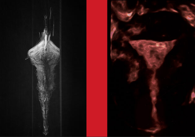 Suzuki Mayumi, also from Tohoku, was chosen on the basis of her photobook, The Restoration Will, about the devastation of her family in the 2011 tsunami. However, for this exhibition she decided to present a series she had been working on after giving up on IVF treatments in 2020. Entitled “HOJO,” or “Fertility,” the origin of the series was in a two-pronged carrot she found in the uri-nokori unsold vegetable bin at a supermarket, which struck her as a metaphor for her own feelings of being unwanted and worthless as a woman who was unable to bear children. Taking it home, she “tenderly” placed a basil leaf on top of it and photographed it. The other photos in the series consist of nude self-portraits taken with long exposures recalling the countless hours spent waiting around in clinics, along with echograms and shots of other vegetables looking like diseased body parts – all symbolizing the ikizurashisa of being a woman in a culture where infertility is not talked about and inordinate value is placed on women’s reproductive ability at the expense of other capacities.