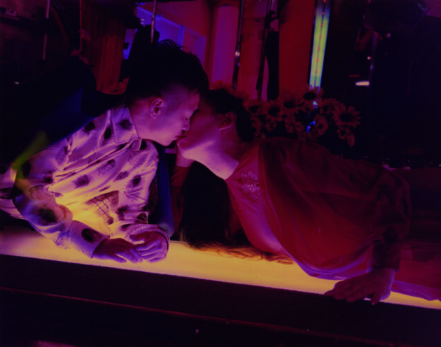 Okabe Momo, in her guise as “Ilmatar,”  a Finnish “virgin spirit and goddess of the air,” moves among the Japanese LGBTQ+ community and presents their proud portraits interspersed with still lifes composed of trash. As reticent in person as she is frank, even flaunting in her photographs, her large-format, neon-colored images evoke a future post-sexual world where sex is decoupled completely from its role in determining gender and even making babies.