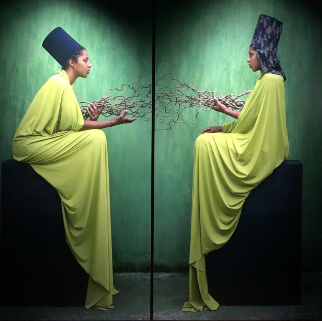 This year features the work of the young Ghanian photographer, Prince Gyasi, at Sfera in Gion and multimedia artist Maimouna Guerresi, who is of Italian and Senegalese origin at Shimadai. Shortly after Reyboz discovered Gyasi’s richly-saturated iPhone images while doing a search on social media, he was also courted by supermodel Naomi Campbell. Some of the work he did for her is on display on Asphodel’s second floor. The work of both artists, which is in many ways very different,  is characterized by rich, saturated color and shows an Africa that far from being “one of the dark places of the earth,” is overflowing with a vibrant, spiritual power.