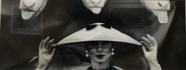 A student of the American surrealist Man Ray, Bourdin caught the attention of Vogue’s visually-sophisticated editors and readers with his photograph of a woman modeling a hat in the company of three severed cows’ heads in Rungis Market. Another influence was the films of Alfred Hitchcock as evidenced by his shots of tarted-up, wholesome-looking farm girls posing in tableaux that resemble frames clipped from a Hollywood thriller. Although images of dead and dismembered models are not uncommon in advertising, especially during this time, the shots featured in the exhibition were apparently selected by longtime KG collaborator curator India Dhargalkar from Bourdin’s archives, and not printed in the magazine.