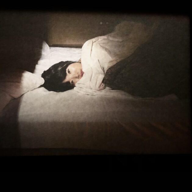 In “Die of Love,” the final exhibition on the black floor,  Tonomura Hideka photographs a model in a manner reminiscent of stills from a movie. In the initial frames she is heavily made up and clothed in sequined evening wear, recalling Tonomura’s time working as a hostess in Kabuki-cho – the colors lurid and out of focus. In the later photos the model is naked in lying in bed in various poses. Read through the lens of Tonomura’s later work (on display at Sfera in Gion), the series also seems to be protesting against the way that women are valued as sexual objects at the expense of the other aspects of their being. She began “Shining Woman Project” after starting treatment for cervical cancer. Putting out a call on Instagram recruiting other women who were being treated for gynecological cancers to have their portraits taken, she was surprised when the women spontaneously asked her to shoot their scars and their disfigurements. Inspired by their rebellion against a culture that views the loss of sexual characteristics as a source of shame instead of the battle scars they are (“we are all survivors,” she says) Tonomura then had the idea of making the women’s portraits into placards to be carried through the streets of Kyoto from Gion to City Hall, arriving just in time for the KG Opening Ceremony.