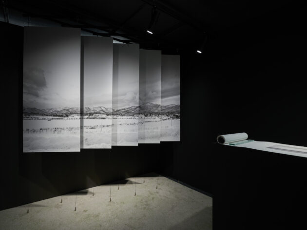 The subject of “Zaido,” by award-winning photographer Chikura Hikari, is a 1300-year-old festival that takes place during New Year’s  in the remote village in northeast Japan where her recently-deceased father once lived. The area’s wintry landscape, the festival participants, and the interiors of homes are printed on vertical banners and single long scrolls in appropriately subdued colors. Chikura said that documenting the festival, which could be wiped out by another tsunami at any time, was her way of honoring her father’s life.
