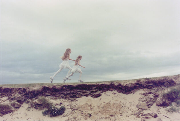 In “Eagle and Raven,” Inaoka Ariko (see KJ#101) expresses how her background as a member of one of Kyoto’s “old families” disposed her to pick up on the invisible bond between the identical twin sisters, while visiting Iceland during her time working as a commercial photographer in New York City. Returning each summer, she photographed the girls in various locations up until they reached the cusp of maturity.  The pastel, softly-focused photos are hung framed in a dainty, wall-papered alcove and a circular gallery recalling the grandeur of the Icelandic landscape.