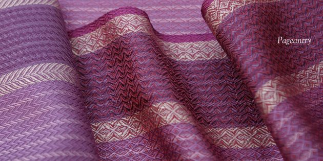 Very often in my travels, a place will inspire me to create a series using the colors of that place. I recently completed two such series. One was called “Spirit of Australia.” The subtitle was: “Terra Australis, Opal Series One.” I wove three scarves to capture the extraordinary vitality and rich ambience and diversity of the different opals — but also the earthy, direct and brilliant quality of the light in Australia. The other series is based around Kyoto, entitled “Miyabi Kyoto,” using the very beautiful ancient colors — the pea greens, soft mauves and oysters, deep purples and browns — evoking an ornamental spring garden glimpsed through fine latticework.
