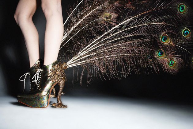 I love birds. My “Chimera” shoe is simple but visually amazing. Don’t you think bird feathers are remarkable? Like with the peacock feather, the color, the details — why is it colored like this? It’s unimaginable and goes beyond human design. That is absolute beauty. Children, grandparents, anyone can love feathers. It’s universal. “Chimera” is a mix of a lot of different animals. Deer, sheep, sting-ray, and a fake cat’s paw. The human who wears the shoe completes the artwork and the life of the shoe. It’s a collaboration between human and nature, in uncharted territory.