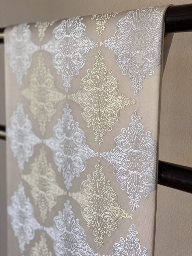 Conventionally, luxurious obi are densely woven and heavy, featuring intricate patterns and multiple colors, including gold and silver. Katsuyama and Shimura, collaboratively, are challenging the conventional wisdom, not with a new approach, but with a revival of centuries-old techniques. The so-called “conventional wisdom” of today may in fact be a historical outlier. In the name of technological advancement, convenience, and efficiency, modern manufacturing has deviated from natural and sustainable practices. Katsuyama’s and Shimura’s vision presents an alternative trajectory toward a true “conventional wisdom.”