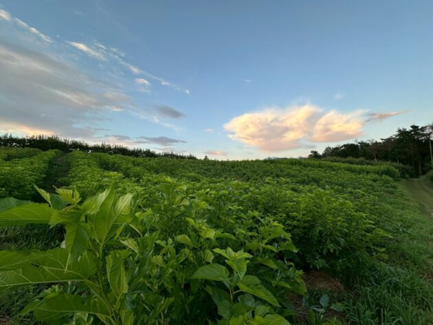 Sericulture is by definition pesticide-free as any pesticides would weaken the very creature being grown. When neighboring farmers use pesticides, this affects the silkworms’ food source and can force reductions in silk production. Silkworms are also sensitive to the bacteria used to ferment natto. Those feeding silkworms are forbidden to eat natto as, even if they wash their hands and mouths, the natto bacteria might remain on their clothes and hinder the silkworms’ growth. The mulberry trees are pruned in the winter. In the early years, Katsuyama purchased fertilizer labeled as “organic.” He then tried self-sourcing by burning cut branches and fallen leaves and using the ash to enrich the soil. The quality of the silk dramatically improved, and the farm is now 100% organic.