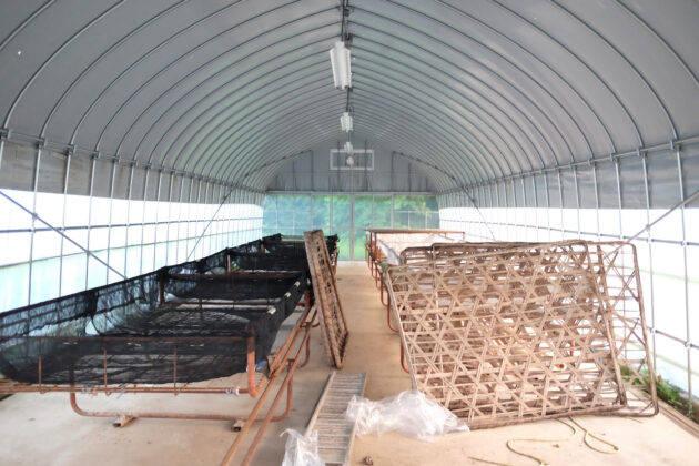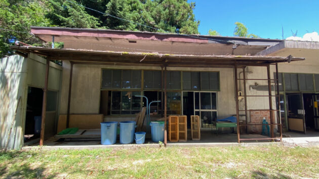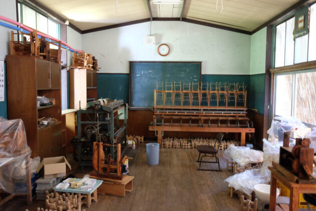 Across from the mulberry farm stands two old sheds where silkworms are grown. The back of the shed has large doors that can fully open to the stream running behind. The temperature is lower there, and the breeze maintains the optimal humidity and ventilation for the healthy development of silkworms. The weaving studio is in a nearby building that used to be a kindergarten. Due to population decrease, the kindergarten was closed years ago, so Katsuyama now rents it from the town.