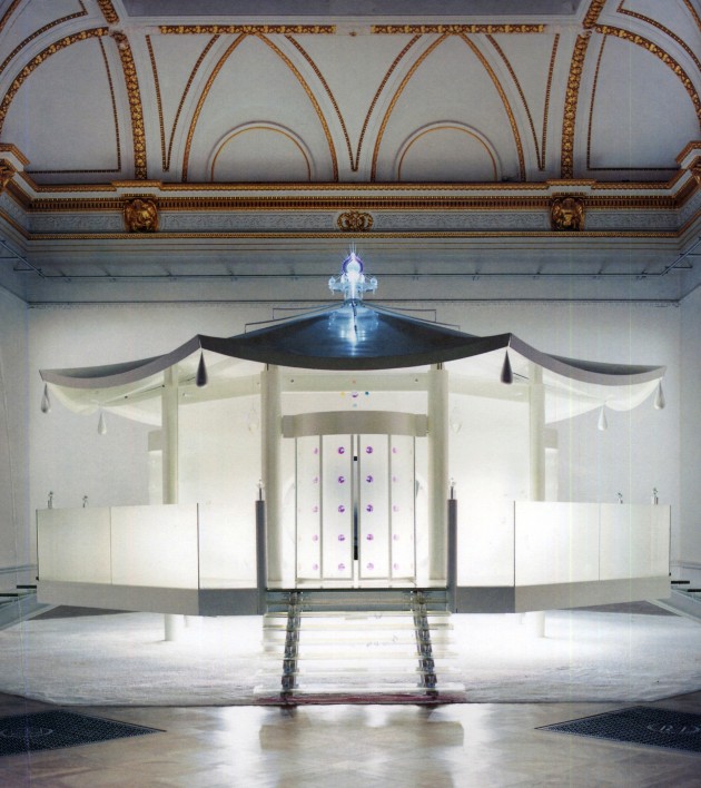 Dream Temple (1998) is Mori’s cynosure, her utopian manifestation as art object and most sophisticated work to date. Dream Temple was inspired by the Horyuji Yomedono (translated as “Dream Temple”) in the ancient prefecture of Nara located south of Kyoto. The Yumedono dates from around 739 AD and is one of the earliest meditation spaces in Japan. Prince Shotoku used the shrine to meditate and study Buddhist scriptures and had extraordinary Onmyodo-like dream visions resulting in the creation of the spiritually-charged statue Guze Kannon, which was placed inside the temple’s core and is the principal object of worship. It is the same height as Prince Shotoku and symbolizes his body and soul. The word “guze” comes from the Saddharmapundarika sutra and means “saving people from suffering.” Legend has it that Prince Shotoku was visited in his dreams by a boddhisattva who taught him difficult sutras. “I felt a strong link between the Horyuji Yomedono and what I wanted to do artistically,” Mori explains. “When I saw the temple in person I was struck by its incredible beauty and by the statue of the Guze Kannon, which has a spiritual strength beyond its physical form. After this experience I was driven to create my Dream Temple project.”