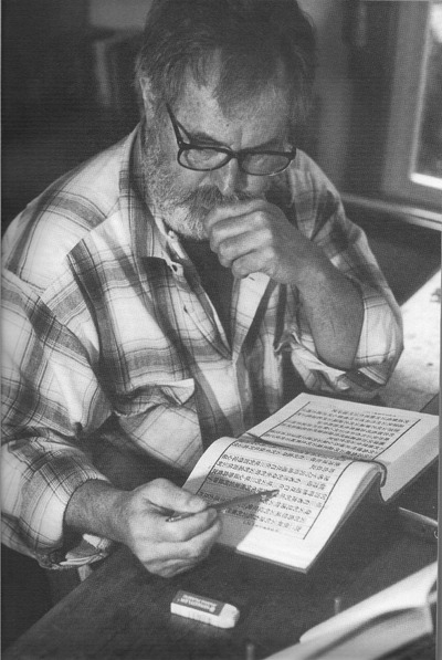 Red Pine lives in a two-story Victorian house on a high hill overlooking Port Townsend. To the south is the Olympic Mountain range. Through the largest window in his workroom he can see the sea. From another window he can see the branches of a plum tree he planted. From another window he can see pine trees and bamboo. On the walls are bamboo paintings, a Buddha tanka, and a painting with a Wang Wei poem. The room is lined with books. He works almost every day with few breaks.