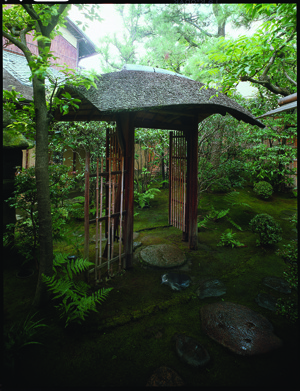 [A]s the Meiji era art critic Okakura Kakuzo says in his classic Book of Tea, “Teaism is a cult founded on the adoration of the beautiful among the sordid facts of everyday existence.” On a similar note of willing disassociation, Japanese garden authority Marc P. Keane writes, “To walk the length of a roji (tea garden) is the spiritual complement of a journey from town to the deep recesses of a mountain where stands a hermit’s hut.” In both instances, the journey down the green, powdery corridor of the tea garden is understood to be transformative.