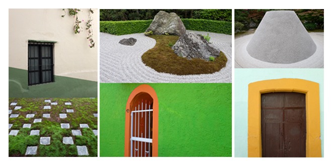 The KyotoGTO series is the result of back-to-back time spent in Kyoto and Guanajuato, Mexico. Gardens and architecture are combined without the need to obey the laws of gravity or a conventional definition of space. These duos depict a criss-cross of cultures that are in many ways opposite although sometimes surprisingly similar in their expression. Color, form and line offer a continuum for connection.