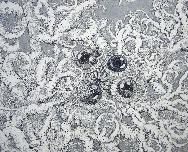 When asked who inspires her, Murabayashi is quick to respond: her own sensei at Kyoto University of Art and Design, the renowned pop artist Tanaami Keiichi. Tanaami, who enjoyed the company of Andy Warhol among other prominent psychedelic artists of the ‘60s, certainly does not shy away from the wacky, often drawing upon his own personal experience of the Tokyo bombings and his dreams as inspiration for his works. Tanaami has been cultivating young talent at the university for some 20 years.