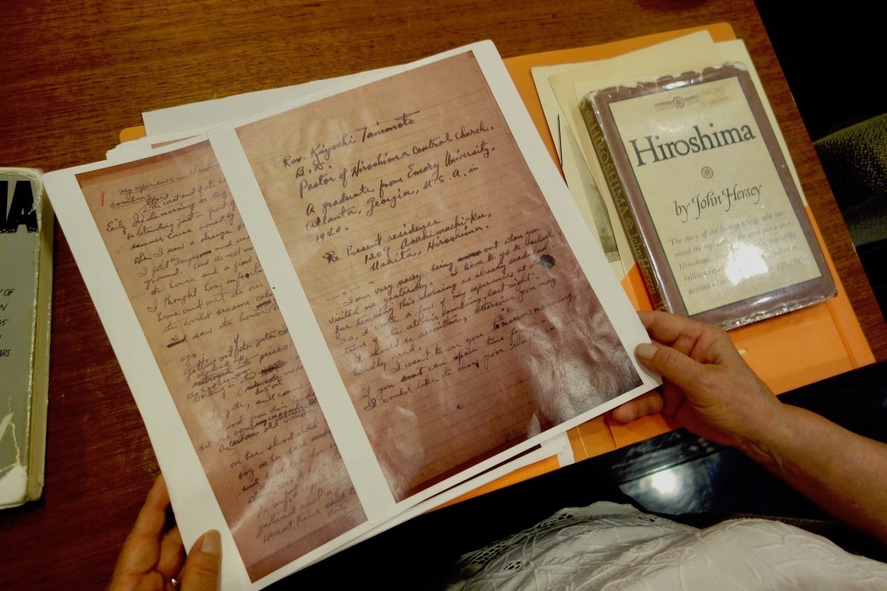 Interviewer’s note: It is important to point out the circumstances behind the documents that Mrs. Koko Kondo shows in the image taken at the beginning of this interview. The pages of the document that Reverend Kiyoshi Tanimoto wrote are copies of the actually documents kept in the Yale University Library. Cannon Hersey, John Hersey’s grandson who had visited the library, sent the copies to Mrs. Koko Kondo in 2016.