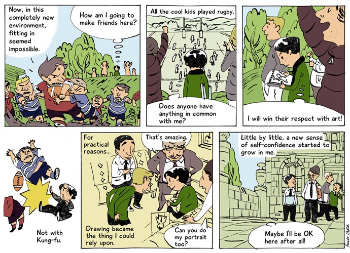 Japanese animator and illustrator Fumio Obata was born in Tokyo in 1975, and has been living on British soil since 1991. After four years at a Gloucestershire boarding school, he went on to study illustration at Glasgow School of Art and the Royal College of Art. Inspired by the Bande dessinée scene in France, he began to concentrate on comic books. His first, ‘L’incroyable Histoire de la Sauce Soja’ was published by Les Éditions de La Pastèque, Montreal, in 2011. You can find more of Fumio’s doodles at www.fumioworld.blogspot.jp/ and www.fumioobata.co.uk/