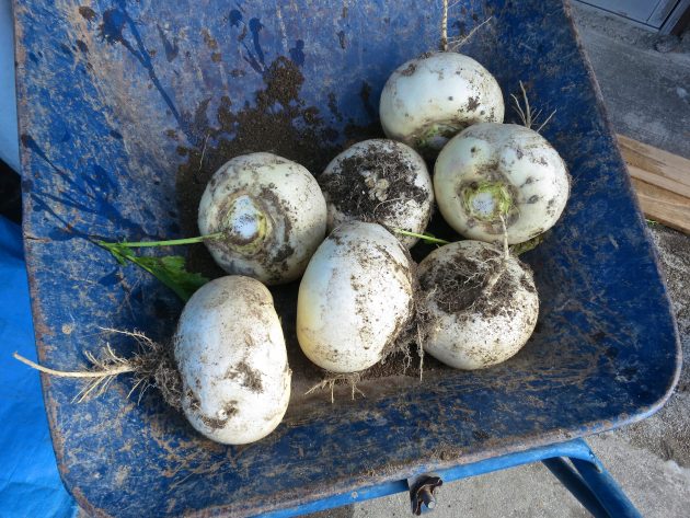 Noguchi’s grandfather won awards for his vegetables, including a Miyama turnip praised by experts almost 80 years ago, and still sold today as a heirloom seed. Recently, people who taste this Miyama turnip are surprised, telling Noguchi that they haven’t bothered eating turnip for a long time, because the F1 variety sold today simply doesn’t taste very good. Turnips have been “improved” to the point where they have become unpalatable.