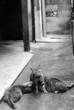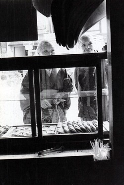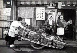 Old Sakamoto-san serves his meals as if each time were the first, forgetting the pickles (or the main course), and stopping in front of the television to watch the last match of the sumo tournament. The little restaurant is dark and small and smells in summer of a vague permissiveness with cats. Every day Sakamoto’s wife and son chop vegetables and grill fish and smile in true kindness on their motley crew of customers: old ladies who live alone, college students away from home, and foreigners with no place else to go. The food is simple and simply superb, and if you belong to the neighborhood and eat here every night, you eat for half price, but you’d better finish all your rice. “Taberaremasu ka?”he always asks, as a humble courtesy to his guests or as if he’s checking to see if his wife forgot to add the shoyu. The neighborhood gathers here each evening, watches T.V. and slurps its soup. Warmed against the cold and loneliness, they trundle off together to the public bath.
